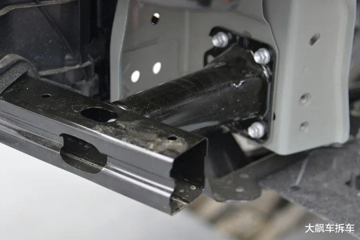 这辆车也有细心行东说念主卷入的副防撞梁,还带有圆柱形吸能盒。