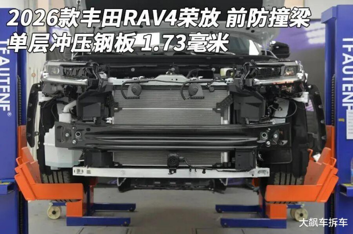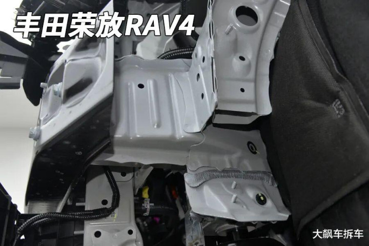 前吸能盒比较到位,双吸能盒野心,绝顶宽大,可拆卸可更换,而RAV4却莫得吸能盒。