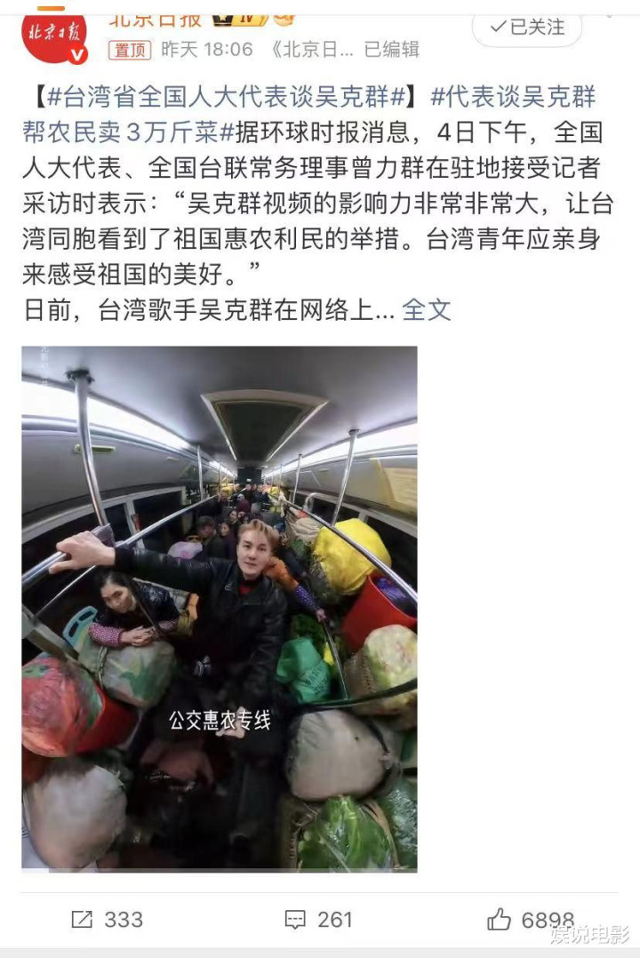 吴克群通过亲自参与贵阳252路惠农专线的助农作为,用着实镜头纪录并匡助菜农售出3万斤蔬菜,不仅展现了大陆下层民生战略的温度,也架起了两岸后生脸色采集的桥梁。这场莫得丽都配景的原野拍卖会,因真挚而动东谈主,让台湾本族看到了大陆乡村振兴的着实图景——从凌晨五点与七旬菜农同搬蔬菜,到用略带生涩的贵州话为老东谈主吆喝叫卖,吴克群褪去明星光环,以“商人纪录者”的身份,将大陆惠民战略的细节传递到对岸。