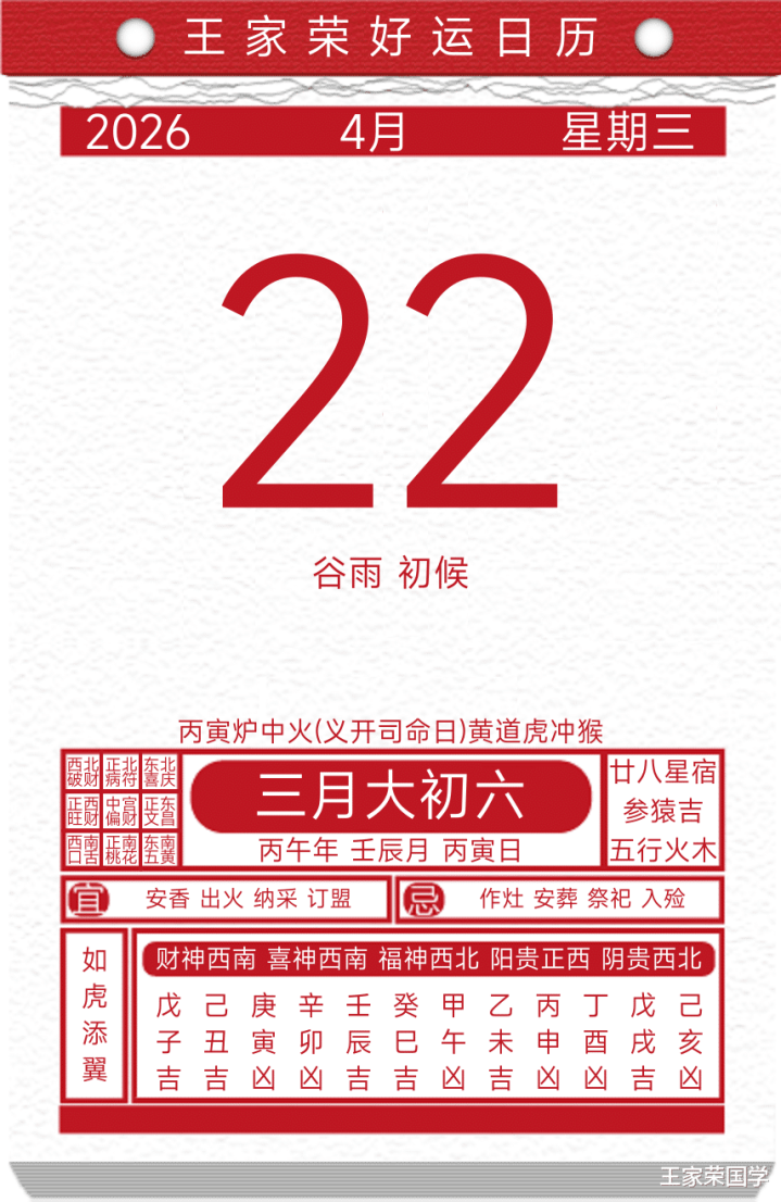 逐日历本福祸宜忌2026年4月22日
