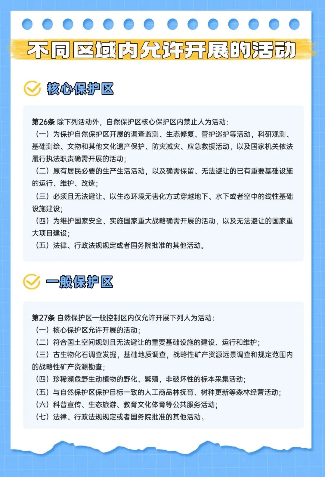 界面新闻记者防御到,国务院第三次阅兵后的《中华东说念主民共和国天然保护区条例》已于3月15日现实。中国探险协会解读,新阅兵后的《中华东说念主民共和国天然保护区条例》将沿用多年的“中枢区、缓冲区、实验区”,修改为“中枢保护区、一般收敛区”,并明确司法了不同区域内,允许开展的东说念主为步履。