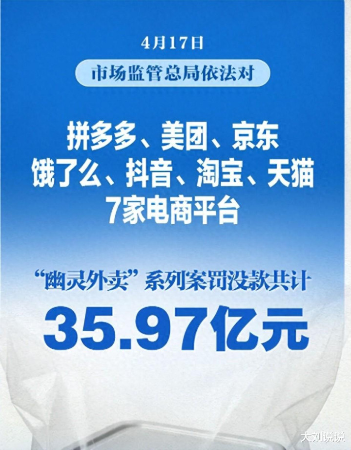 拼多多、好意思团、京东、饿了么、抖音、淘宝、天猫,7家平台一个不落一都被点名,罚单的锋芒直指"阴魂外卖"。