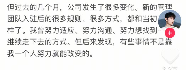 林林是起程点晓谕辞职的。在个东说念主账号发文的时候只说是肉体原因,给公司处罚层留了少量儿面子。