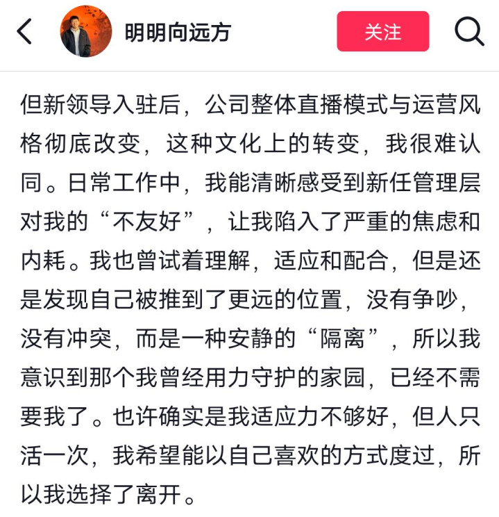 随后,东方甄选东说念主力资源部阐明明明和天权已矜重辞职,明明和天权发文贬低新任处罚层订正直播阵势和运营格调,让主播们堕入慌张和内讧。